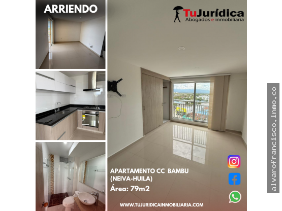 Espectacular apartamento ubicado en el exclusivo Conjunto Residencial Bambú, sobre la Carrera 21 No. 25-52 Sur, en la zona de mayor proyección económica de la ciudad, conocida como Neiva La Nueva. A tan solo 100 metros del Centro Comercial Unicentro y con vías que conectan fácilmente el sur de la ciudad.