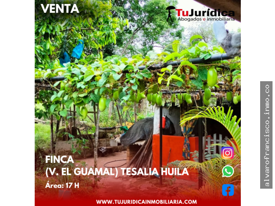 Se vende espectacular finca ubicada en la vereda el guamal en municipio de Tesalia en el departamento del Huila, Col con un área de 17 hectáreas.
